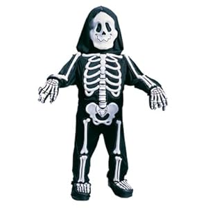 Category: Toys & Games Vendor: 100% polyester. Includes: Hooded jumpsuit, 3D skeleton bones, 3D skeleton mask, and 3D bone gloves Size: Toddler - Large (4-6)
