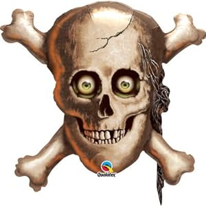 Category: Toys & Games Vendor: Shipping Weight: 1.6 ounces (View shipping rates and policies) ASIN: B003UFJVPC Amazon Best Sellers Rank: #527,885 in Toys & Ga Product Description : Skull and Cross Bones Shaped Jumbo Foil Balloon measures 32" high.